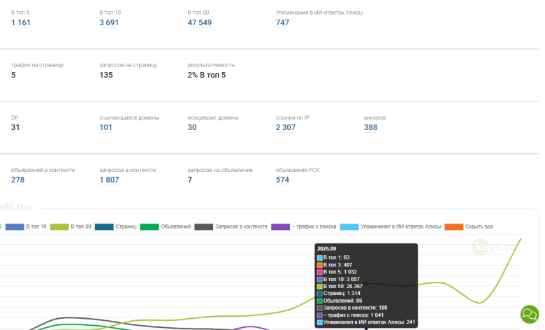 Срез некоторых позиций сайта в поисковой системе Яндекс.